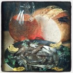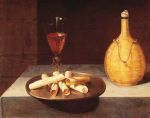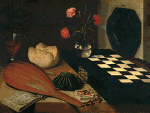 Charles avait eu un invité qu’il avait honoré de bons crus, sans doute. Elle vit aussi une miche de pain non entamée, des œillets rouges dans un vase, un échiquier. Sur cette même table, un luth était retourné sur un livre de musique près d’une bourse et d’un jeu de cartes (47). C’était vivant par ici. Sur l’autre table visible de son carreau, La Louvre aperçut des gaufrettes dans un plat d’étain et une fiasque restée bouchée (48).