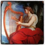 «Récemment, un ami, un flutiste qui n’a plus qu’un œil ayant perdu l’autre dans un terrible jeu d’enfant (67), m’a parlé d’un tableau qu’il a vu dans un de ses voyages vers Rome et qui représentait trois de ces Muses faisant ensemble de la musique. Il a été étonné de la façon dont le peintre avait représenté ces Muses. En effet, il y avait là Melpomène qui lisait de la musique et la chantait, Erato, écoutant et aussi Polymnie, qui jouait, elle, de la contrebasse de viole. C’est cela qui a étonné mon ami. Que dans un charmant paysage de verdure, Polymnie jouât de cet instrument, il ne l’a pas compris. Pour lui, ces Muses pouvaient jouer de la lyre ou de la cithare. Mais, d’un instrument pratiqué aujourd’hui, cela l’a étonné. Oui. Parce que ces femmes sont d’un passé lointain (68) ». La Louvre dit qu’elle comprenait cet étonnement, qu’elle savait ce qu’était lyre, cithare et harpe et qu’en effet, elle se souvenait que l’on faisait, autrefois, si l’on s’en tenait aux humains, plus de musique avec ces instruments. « Ah, voilà, chère tante, notre flutiste m’a dit cela. Un autre tableau du même peintre représentait une autre de ces muses une harpe à la main. Je pense me souvenir que cette Muse-là est appelée Calliope (69) ».