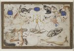 Quand elle eut mangé jusqu’aux moindres petits os de son excellente chasse, La Louvre trouva facilement où se blottir pour dormir sans s’éloigner de l’endroit où elle avait convenu avec Diego qu’ils se retrouveraient au matin. Sa nuit la mena dans un rêve très inhabituel pour elle. Dans ce rêve, il n’y avait aucune trace d’histoire, d’événements même confus, de gens ou d’êtres se parlant, accomplissant des jeux, des actions de chasse ou de lutte. Tout passait par l’œil. Tout était en images fixes et images éparses, par ailleurs. Tout était d’admiration. La taille des différents animaux et des autres éléments était étonnante. Des insectes étaient bien plus gros que des bêtes à fourrure et pattes à bondir et courir. Une chenille était bien plus grosse que des perdrix familières. Il y avait là-dedans, dans ce rêve-ci, des êtres qu’elle adorait : un petit singe, aux oreilles poilues et comme pointues, qui allait pour commencer à manger une sorte de racine, des noisettes encore couvertes de leur gaine feuillue, des papillons dont un qu’elle savait associer aux feuilles du groseillier, des oiseaux en quantité. Il y avait des choses bonnes à manger : une hermine, une genette, des escargots, une sauterelle si grosse qu’à elle seule, elle lui aurait rempli l’estomac pour plus d’un jour, un lézard lui aussi fameusement grand, de bonnes baies. Il y avait des fléaux d’hommes et un autre outil qu’elle connaissait pour l’avoir vu en beaucoup d’endroits, un outil dont elle avait compris qu’ils l’utilisaient pour comparer comment était lourd ceci par rapport à cela. Elle vit aussi une bête dont Gian Francesco lui avait parlé quand c’était le temps de parler du Levant. Il avait dit que c’était une bête dangereuse, peut-être même plus que certains serpents. Une bête petite, avec beaucoup de pattes. Une bête très puissante pour apporter la mort par le poison contenu dans son corps. Elle était ici représentée dans le rêve toute dorée sur un sol bleu, cette bête à redouter. La Louvre comprenait, avec la description qu’il lui en avait été faite, que c’était bien cette bête-là que la nuit lui révélait, dans ce rêve silencieux, où même les oiseaux se taisaient. Ce qui lui plut le plus, ce furent, rassemblées, dans un même coin, les images de trois êtres qu’elle chérissait, mais à des titres bien différents : un écureuil, très bon à manger, s’appuyait de ses pattes avant sur une sorte de roue dans laquelle se trouvait, inscrit en un dessin, doré sur fond bleu lui aussi, un centaure bandant son arc. Elle pensa forcément à son cher Chiron, quand elle se réveilla de cette nuit-là. A côté de l’écureuil et du centaure, on voyait s’envoler un beau houpoupoup, que nous autres appelons huppe, huppe fasciée, avec sa magnifique crête plumée qui se déploie quand elle sort de son vol et se pose au sol pour aller picorer et pâturer vers et insectes et larves, avec, encore, sa robe bigarrée de couleurs attachantes, fauve et orange, noir et blanc (255).