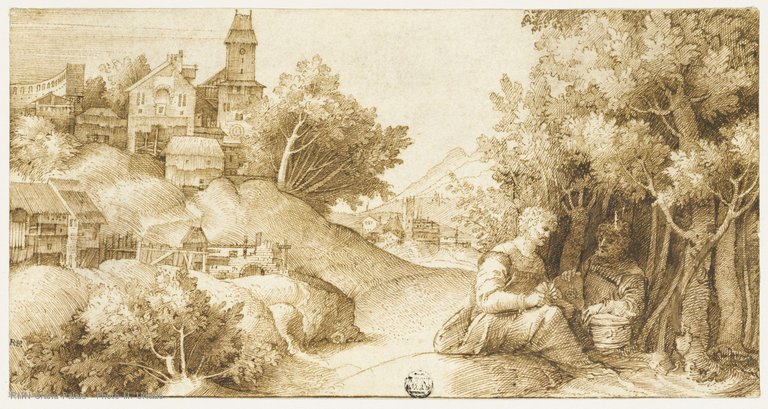 Leur voyage les mena par des régions vides d’hommes et aux ciels menaçants (372). Mais aux roches succédèrent des rivières (373) et aussi des habitations humaines, parfois majestueuses (374). À la pluie succéda le beau temps. Si l’argent donné par le maître de Geert à Diego n’avait pas tenu compte de son seul travail, mais aussi de son courage face au chien fou, il en fallait toujours un peu pour l’entretien du feu, pour quelque fil, quelque étoffe, quelque pain que l’on n’avait pas ainsi à mendier. Il en fallait pour le bac qui permettait de traverser une prochaine rivière. Il en fallait pour aller chez le barbier puisqu’il n’avait personne qui puisse lui couper les cheveux et garder, tant que se pouvait, ceux-ci propres. Il en fallut pour se faire tailler une nouvelle culotte. Et, souvent bien accueilli, soit par des maîtres, soit par de simples paysans, l’enfant continua donc à travailler, ici ou là, dans plusieurs domaines et plusieurs fermes sur le trajet (375).