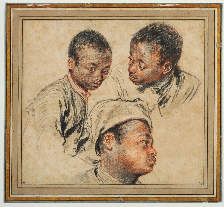 Elle a dit : ‘comme pour faire croire à l’absence du malheur, comme pour leur faire oublier le sort des leurs, de leur proches’ Vois-tu ? Et il y a des singes, là-bas » « Oui, Diego, ce qui tu racontes, je l’aime. Mais ces hommes et femmes comme bêtes de trait….Et aussi ? » « Et aussi, Dame Louvre, pense bien à cela. Comme toi, cette femme a son portrait. Elle me l’a montré » « Ah, ah ! ». La Louvre, toujours le museau sur les pattes avant, fermait presque les yeux. L’enfant la regarda bien, dans cette position d’attente et d’écoute, et lui caressa la tête. « Dame Louvre, toi, c’est ton cher neveu de musique qui a fait peindre les petits singes qui a fait ton portrait. Et pour cette femme dont je sais le nom – elle me l’a dit – c’est une femme qui a fait le portrait, oui. Elle m’a demandé le mien, de nom, et après, j’ai su le sien. Elle s’appelle maintenant Élise. La femme qui peint, elle, son nom, c’est Marie-Guillemine. Le portrait, elle ne peut pas le montrer facilement. Elle l’a mis sous du linge et le garde là. C’est comme une sorte de coffre. Il est grand comme… » Il hésita, mesura sur son bâton, s’y reprit à plusieurs fois. « Oui, cinq de mes empans d’un côté et trois autres de l’autre, je dirai ». Et il reporta ses mesures sur le dos de La Louvre. « Oui, grand comme ça. Et on la voit bien. Elle est assise. On voit son visage, sa tête. Son cou est haut. La couleur dit bien sa peau. Elle ne sourit pas. Elle est tranquille. Avec moi, elle souriait, oui. Souvent. Sur l’image, c’est de côté » Il se tourna, comme pour se mettre de trois quart. « On voit aussi son buste ». Il fit un geste qui disait la rotondité de la poitrine de cette Élise. Et La Louvre, qui regardait Diego maintenant, sentit qu’il avait un peu honte de son geste et aussi de ce que cela voulait dire. « Tu veux dire qu’on voit ses belles mamelles, Diego, sa poitrine de mère, c’est ça ? ». « Oui, Dame Louvre, on voit ses épaules nues et sa poitrine. Mais je ne pense pas qu’elle soit encore mère. Elle est très calme sur cette image, avec des anneaux aux oreilles. Elle a aussi de belles mains. Marie-Guillemine a fait ce portrait (412). Mais les maîtres d’Élise ne le savent pas. Je te l’ai dit, vraiment peu de gens savent. Je suis fier de la confiance d’Élise. Elle a senti qu’elle pouvait avoir confiance en moi. Et c’était notre première rencontre. Elle m’a montré ça. Son portrait. Elle a dit : ’Diego, si ton charbon convient, je le dirai. Et tu feras d’autres livraisons’. Et elle m’a donné l’argent. Et j’ai salué. Et me voilà ». La Louvre ne bougeait pas. Ils savourèrent ensemble un instant le récit de l’histoire d’Élise qui n’avait pas toujours été Élise et de la rencontre, mais Diego, sursautant presque, lança : « Dame Louvre, les Jean vous m’attendre pour manger. Je reviens après. Vite. Reste par là. Je te raconterai d’autres choses ». Et il était déjà au bout de son bâton à aller vers les cabanes, aussi rapidement que le pouvaient ses jambes. La Louvre se tenait là à penser à tout ceci : le nom changé, l’île – une île d’Afrique ou une île avec des gens amenés d’Afrique ou bien des gens à la peau couleur de terre d’autres régions dont elle ne sait rien ? -, le frère qui entretenait les armes des soldats ou leur faisait à manger ou tenait propres leurs habits, la plante à sucre dont une nièce lui avait parlé et qui pouvait être mise avec tout cela, oui, elle avait un souvenir très vague à ce propos. Mais les choses se mélangeaient trop dans sa tête. Elle pensa à la pose dans l’atelier de Gian Francesco. Elle se souvint qu’il parlait de la décontraction du modèle. Avec ce peintre tout nu, qui n’était pas décontracté, c’était bien certain ! Et elle, était-ce vraiment une bonne idée d’elle que l’on pouvait avoir sur son propre portrait ? Comprenait-on vraiment sa toison ? Ses mâchoires ? On ne pouvait assurément pas comprendre son chant, ni l’amour de ces nièces et neveux de musique, quand elle était comme cela à plat, comme une musette dégonflée.
