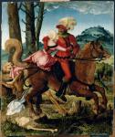 Dans la nuit de Diego vint un cavalier. Mais ce cavalier, il savait bien que c’était lui (414). On aurait peut-être même pu dire – et lui le premier – que c’était un chevalier. Il avait fière allure. Et son cheval, donc ! Ce Diego-là était vêtu de rouge. À ses bottes, le talon tintait d’éperons. Sur sa tête, le casque à visière était surmonté d’un plumet blanc très fourni. Le voilà qui traversait des contrées peu hospitalières de sa région natale. Mais tout à coup, dans les environs, devant lui, près d’un bouquet d’arbres secs, il devine sa belle, sa promise, presque entre les mains de La Mort ou plutôt entre les os de ses mains ! Il la voit certes, mais il entend surtout, distinctement, l’infâme Mort crachoter : ‘tu es bien malade. Tu es à moi. Comme cela est bon !’. En un éclair, son magnifique cheval qui avait, lui aussi, compris le terrible danger, l’amène auprès de sa jeune amie qu’il enlève très facilement des mains de la Mort. Cet immonde squelette ne put retenir dans sa gueule hideuse qu’un pan de la robe rose de son aimée. Ce Diego-là regarde d’un air enamouré et calme et sûr de sa force sa charmante compagne, maintenant installée en amazone sur sa cavale. Et ils sont déjà loin. Diego, en enlaçant de son bras droit le corps souple, avait senti, sous sa main, le sein comme battre et vibrer. Ah, comme cette généreuse poitrine serait douce à caresser, encore et encore. Quand il serait temps. Quand il se pourrait. Il se souvint au matin qu’il avait parlé à sa belle, aussitôt qu’elle s’était trouvée sur la croupe de son cheval et c’était sa voix d’enfant, sa voix d’aujourd’hui, qui avait dit dans ce corps d’homme : ‘Tu n’es pas malade. Nous aurons de beaux enfants’.