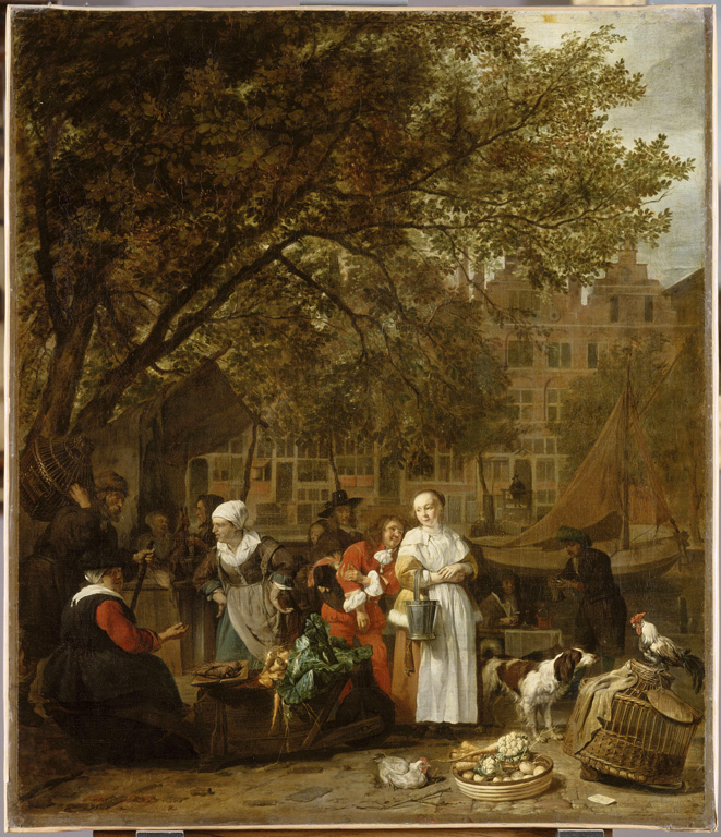 Souvent, Diego parlait avec telle femme ou telle autre. Il aimait aussi discuter, s’ils les croisaient, avec Gilles , le porteur d’eau (447) ou Antoine, toujours à essayer de vendre des chaises ou de proposer à en réparer (448). Ils allaient au marché aux herbes (449). Ils livraient des pommes à la marchande de fruits (450).