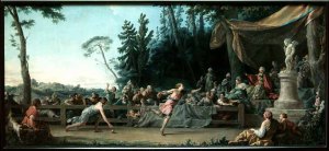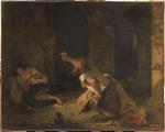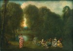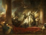 Denis pense à l’injustice. C’est à cause de La Louvre, sans doute. Mais, comment parler d’injustice, s’agissant de cet être magnifique. L’injustice, c’est aussi à cause des derniers tableaux dont il a fait la critique. Dont il a essayé de dire ce qu’ils pouvaient produire en nous. Ce qu’ils étaient en tant qu’objets de contemplation et de désir, tout autant. C’est un tableau de Jean-Honoré qui le tient maintenant, mais sans qu’il y pense en tant qu’œuvre de peinture, en fait. Il sait ce qu’il en est de ce que le peintre a souhaité montrer. Avec Corésus, le prêtre de Bacchus, dans cette ville de Calydon. Le nom est dans le titre même donné au tableau. Avec Callirhoé, que Corésus aime, mais qui ne reçoit que mépris en retour. Ah ! C’est que Corésus en vient à demander l’aide de son dieu ! Peut-être demande-t-il même vengeance ? Et la réponse de Bacchus ne se fait pas attendre : des foules de gens devenus ivres d’un coup d’un seul d’un bout à l’autre de la ville et qui, bientôt, oui, s’entretuent, dans leur saoulerie. Voilà ce qu’il en est de la colère de Bacchus quand elle se déchaîne. Et maintenant, il veut plus, aussi ? Il veut pire, Bacchus. Il exige que Corésus lui immole Callirhoé ou quelqu’un qui s’offrirait pour elle. Corésus est comme pris au piège. Et, finalement, il se donne la mort, ce prêtre, dans sa déroute, pour épargner Callirhoé et pour honorer son dieu (659).