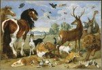 Simon, Jon et Diego on été pris. Comme les trois autres Jean, ils ont été mis dans un four avant d’aboutir dans un des cachots du palais royal. Dans les très obscures prisons. Très près de leurs compagnons. Très près de La Louvre. Sans qu’ils le sachent, eux non plus. Dans ce bâtiment que beaucoup maintenant, dans la ville, dans les rues et ruelles, nomment château de Louvre. Ils ont peur. Mais, dans la nuit de Diego, sont venus des foules d’animaux. D’abord deux par deux : deux lions, deux moutons, deux renards, deux perroquets. Et d’autres et d’autres (678).